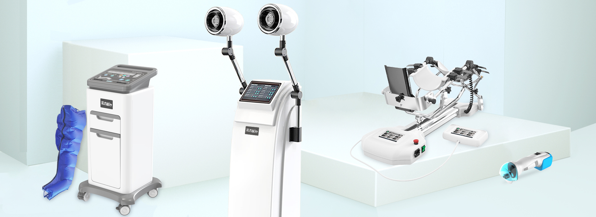 下肢關節(jié)康復器,關節(jié)持續被動活動儀,空氣壓力波治療儀,智能多功能按摩儀,中頻電療儀,頸腰椎牽引裝置,氣壓彈道式體外壓力波治療儀,冷空氣治療儀,熏蒸治療儀